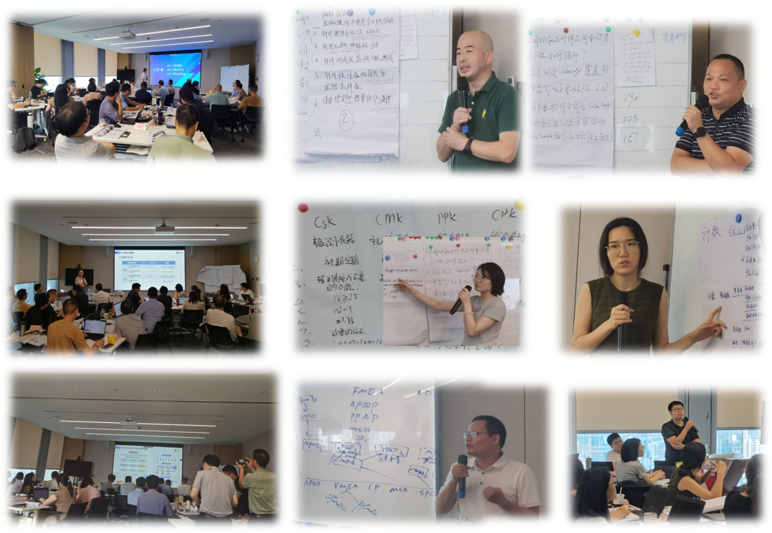 培訓(xùn)期間,學(xué)員們接受了六門核心課程的系統(tǒng)學(xué)習(xí),涵蓋五大質(zhì)量工具、8D分析失效與糾錯(cuò)以及數(shù)字化運(yùn)營等關(guān)鍵領(lǐng)域。本次培訓(xùn)還特別安排了三個(gè)最佳實(shí)踐分享,包括品質(zhì)數(shù)據(jù)追蹤系統(tǒng)、FMEA軟件演示及操作體驗(yàn),智能SPC系統(tǒng)介紹等。講師團(tuán)隊(duì)以技術(shù)工具為基礎(chǔ),方法為主線,由淺入深,理論聯(lián)系實(shí)際,結(jié)合多個(gè)案例,有效解答了大家在管理工作中存在的諸多疑惑,明確了解決問題的思路和方法。