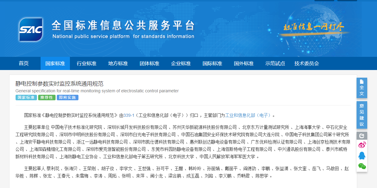 近期,由工業和信息化部立項、中國電子技術標準化研究院歸口管理的國家標準GB/T 44787—2024《靜電控制參數實時監控系統通用規范》正式發布,將于2025年5月1日起實施。作為我國首個自主制定的靜電控制參數實時監控領域國家標準,該標準填補了國內外技術標準空白,指引相關產業公平、科學、良性發展。