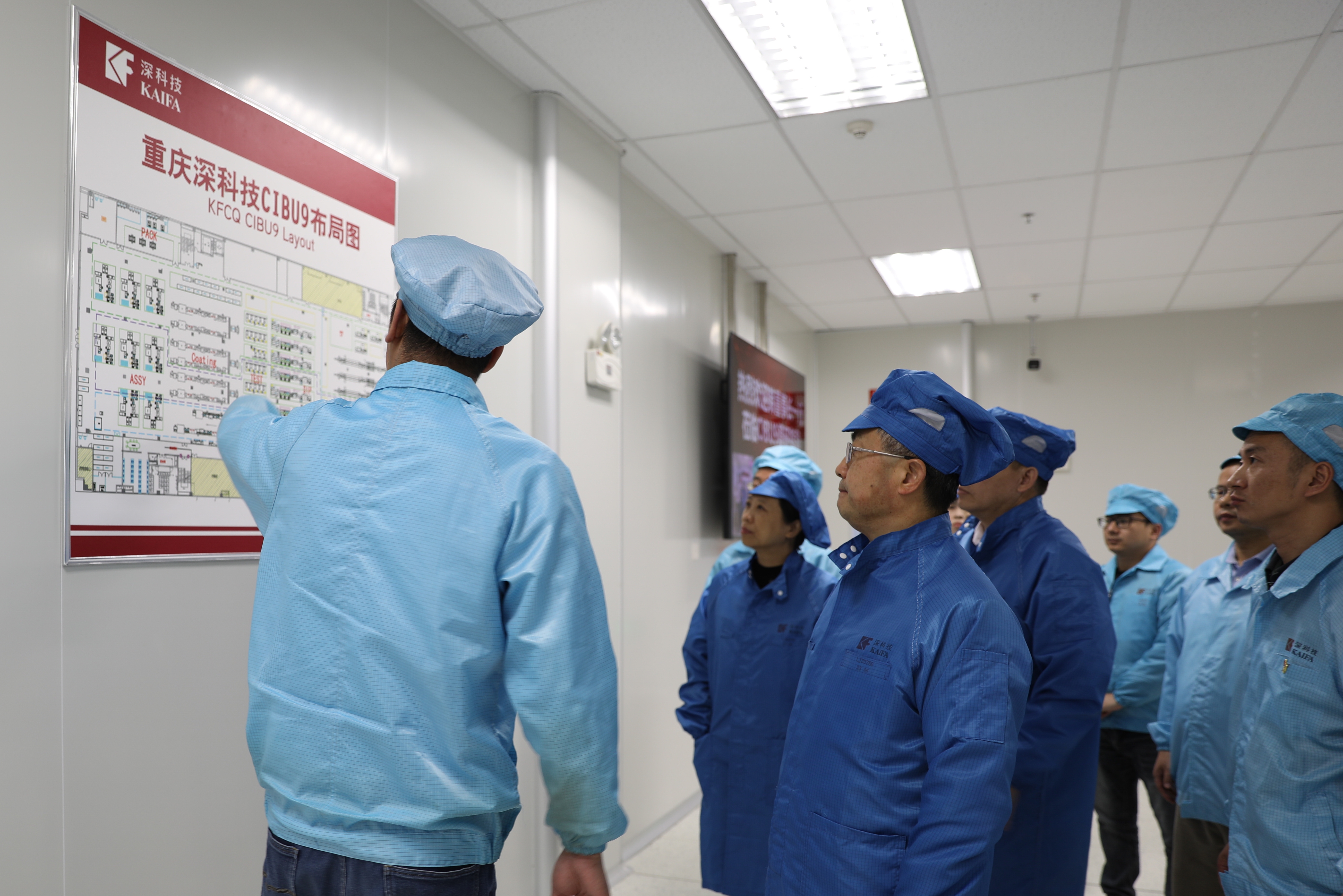 在深科技重慶公司,韓宗遠深入辦公區、員工活動中心、員工宿舍、生產車間、工程技術實驗室、IT機房及食堂操作間等場所,與干部職工親切交流,了解他們的工作、學習及生活情況,詳細詢問生產運行情況。