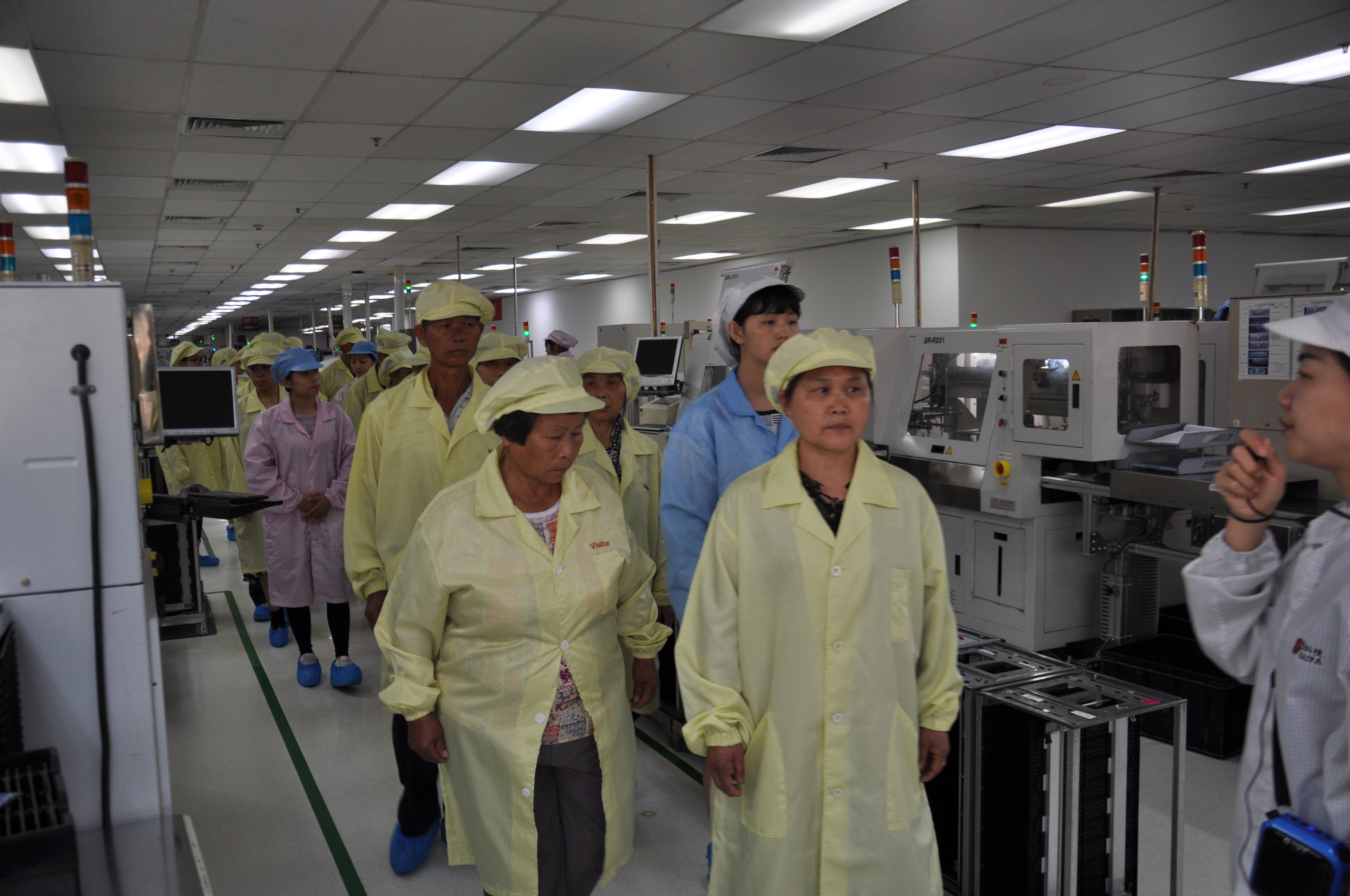 此次活動得到了公司領導的高度重視,公司黨委書記、副總裁陳朱江,紀委書記、工會主席才淦向員工父母送上親切的問候并同他們合影留念。 為了讓員工父母全方位了解公司、了解深圳,公司工會精心安排了一系列活動。4月13日,工會工作人員陪同中獎員工及其父母到公司參觀,了解其子女目前的工作、生活環(huán)境,及公司未來的發(fā)展規(guī)劃并進行座談。在生產(chǎn)車間,現(xiàn)場感受子女們的工作環(huán)境,贊嘆公司一流的工藝流程及生產(chǎn)環(huán)境;在高層公寓與員工俱樂部,了解子女們的住宿環(huán)境與體育休閑場所;在員工餐廳,看一看子女們平時的就餐環(huán)境,嘗一嘗公司飯?zhí)玫娘埐?,感受公司的飲食文化。?jīng)過一天對公司的參觀以及對廠區(qū)升級改造的了解,員工父母們都感到非常欣慰,紛紛表示“子女們能在這樣有規(guī)模的公司工作感到非常放心,希望孩子們能與深科技一同成長,并鼓勵孩子們在深科技好好工作。” 在座談會上,紀委書記、工會主席才淦,開發(fā)微電子總監(jiān)張國、計算機與存儲事業(yè)部副總監(jiān)胡彬、黨群工作部經(jīng)理任梅以及分工會主席代表就員工們的工作和生活情況與員工父母展開交流。才淦表示,深科技一直倡導親情文化,極力為員工創(chuàng)造和諧健康、積極向上的環(huán)境,讓他們感受到工作的快樂,企業(yè)的溫暖,希望員工父母通過到公司參觀,增進公司與員工家庭之間的相互了解,體驗深科技以人為本的企業(yè)文化,讓遠方的父母們放心,讓員工們安心工作;希望父母們和孩子利用難得的相聚一起暢游深圳經(jīng)典旅游景點,感受深圳本地歷史人文,整場座談充滿溫情。